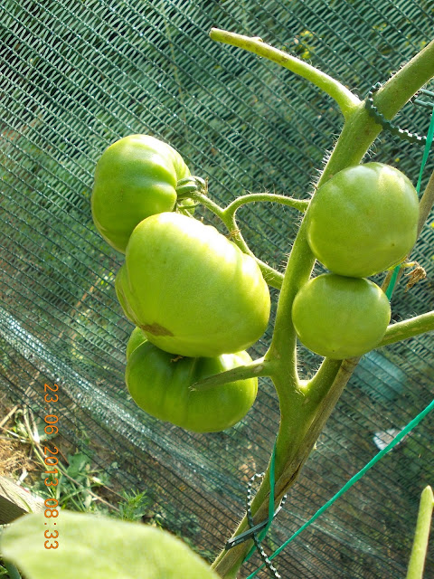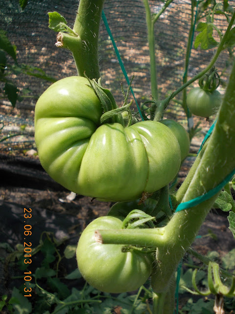 Si tu ai soiuri destule de rosii :).Si eu am pus peste 30 de soiuri si ma gandeam acum cum o sa le deosebesc intre ele , ca la plantarea afara nu am mai pus nicio eticheta si, de exemplu , rosii negre am de cateva feluri. Cred ca una neagra a inceput deja sa dea semne de coacere la mine. Sa ne fie sanatoase toate si sa ajungem sa le vedem coapte , iar eu as vrea sa pot sa am destule ca sa fac suc din ele.