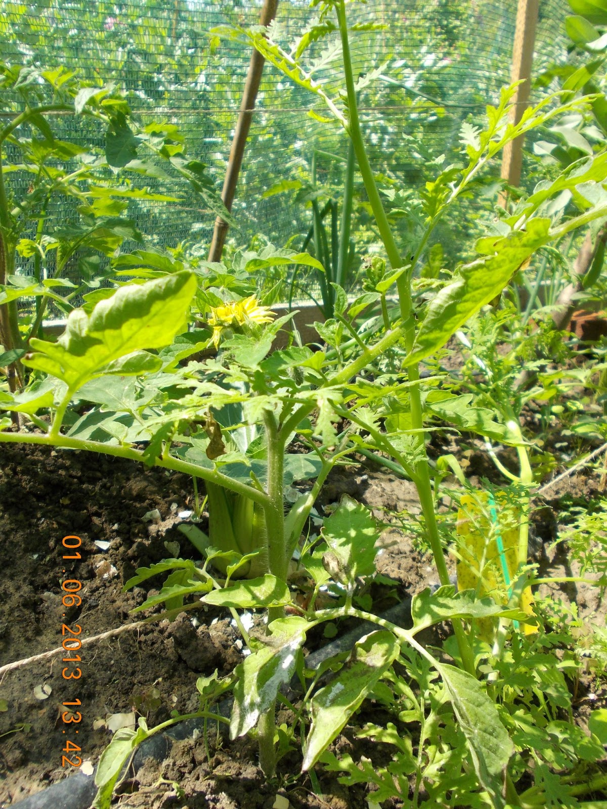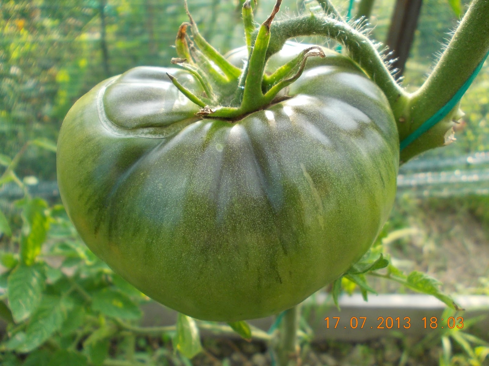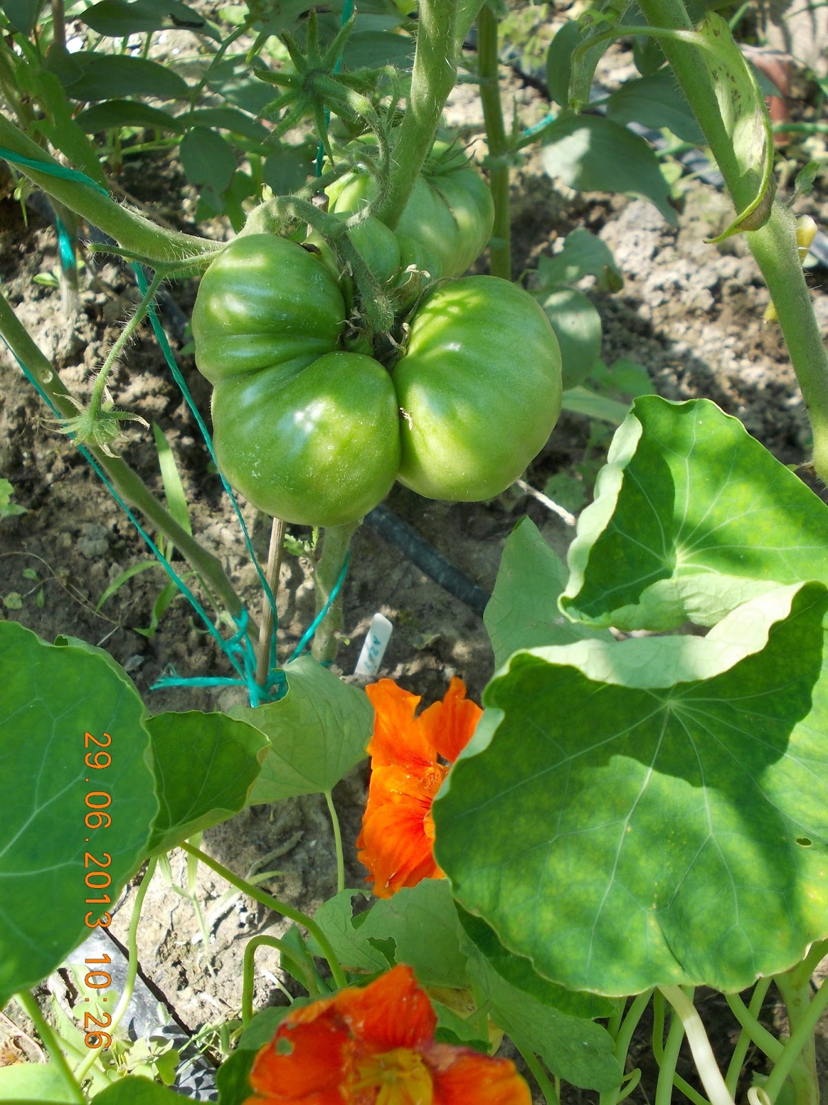 Aici am gasit-o pe azoyushka cultivata in solar, langa Chocolate Stripes si Mortgage Lifter Yellow.