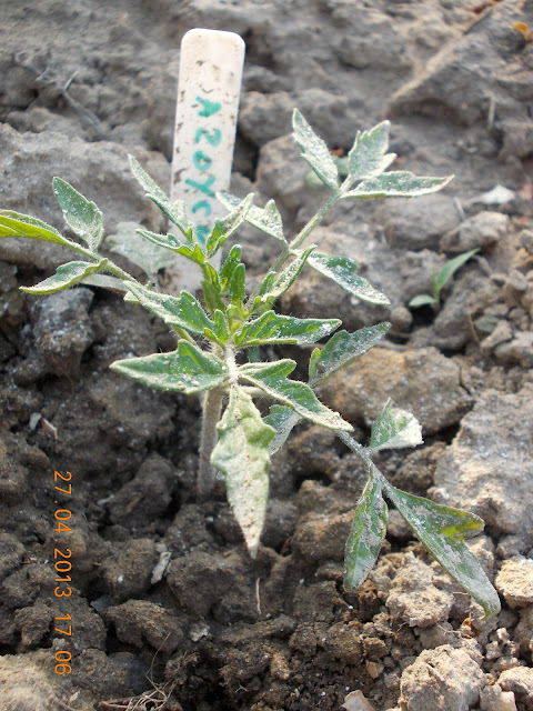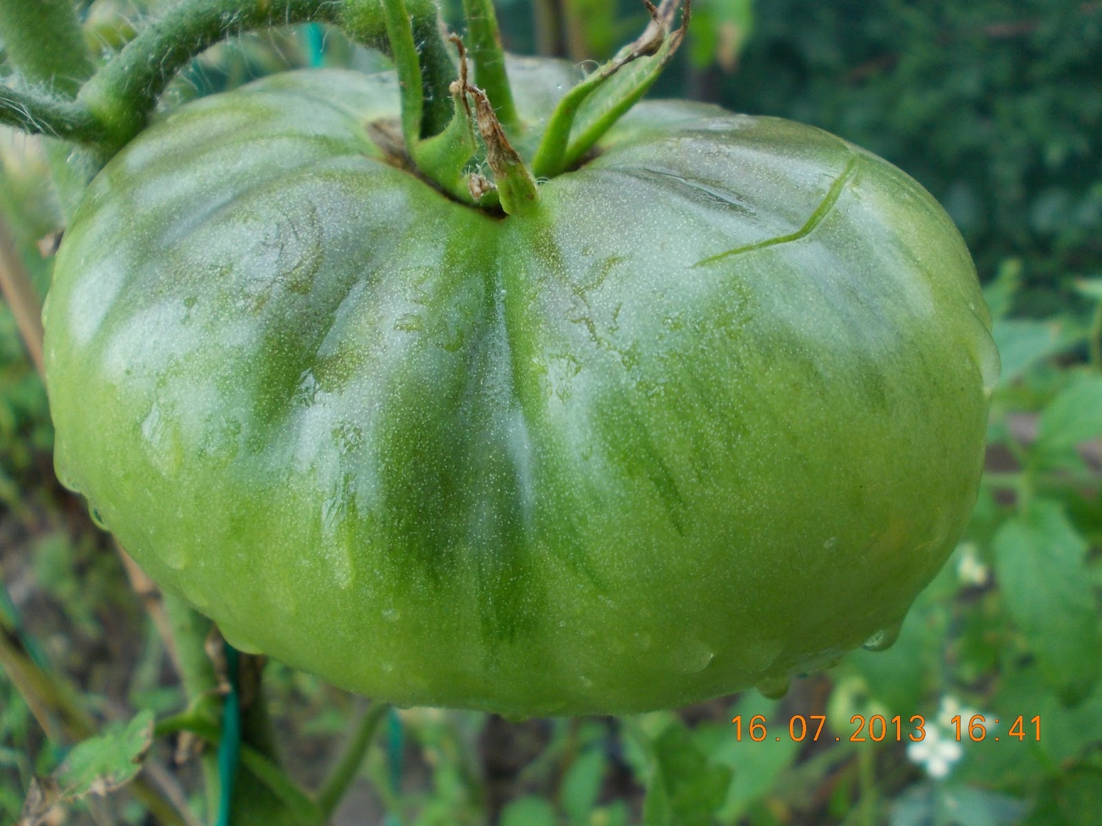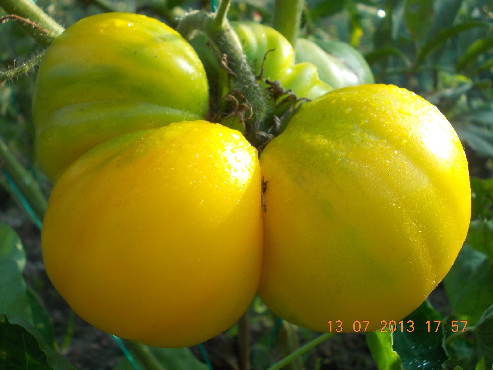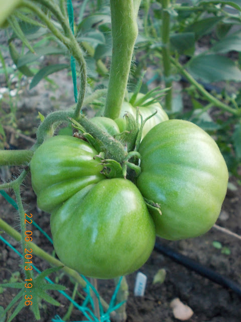 Aici am gasit-o pe azoyushka cultivata in solar, langa Chocolate Stripes si Mortgage Lifter Yellow.