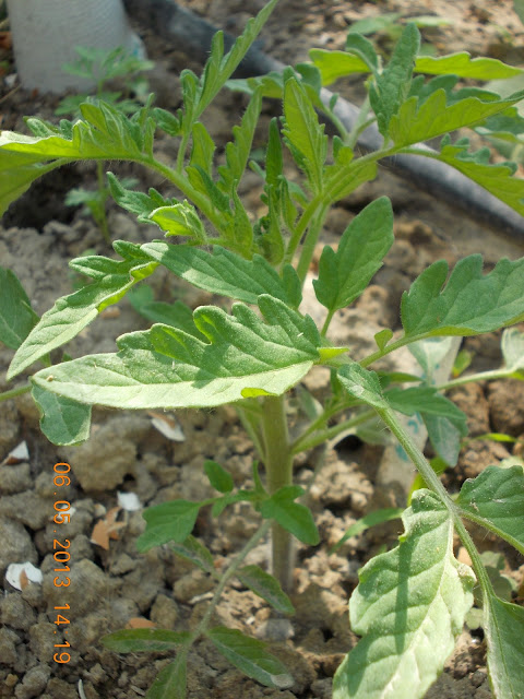Piticele rosioare au crescut odata cu celelalte surate plantate printre ele, rosiile din rasad, cu bobul, facelia, pack-choiul, mazarea sparanghel, ceapa, usturoiul si mustarul rosu gigant. Cand tulpinile au fost destul de groase le-am pus cercelul de cupru si le-am cenusit, iar cand au inflorit le-am hranit bine la radacina cu drojdie si pe frunze cu macerat de tataneasa, urzica si coada calului si cu bor pe flori. Plantele sunt mai indesate si mai viguroase iar florile parca au mai multe petale. Le-am defoliat ca si pe celelelte tomate si fructele nu au intarziat sa apara.