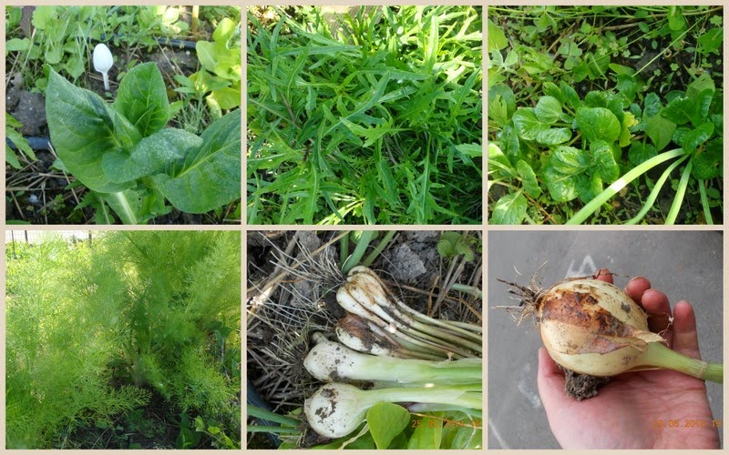 Propunerea mea de salată: mazăre alături de cicoare, rucola, tatsoi, fenicul și ceapă.
