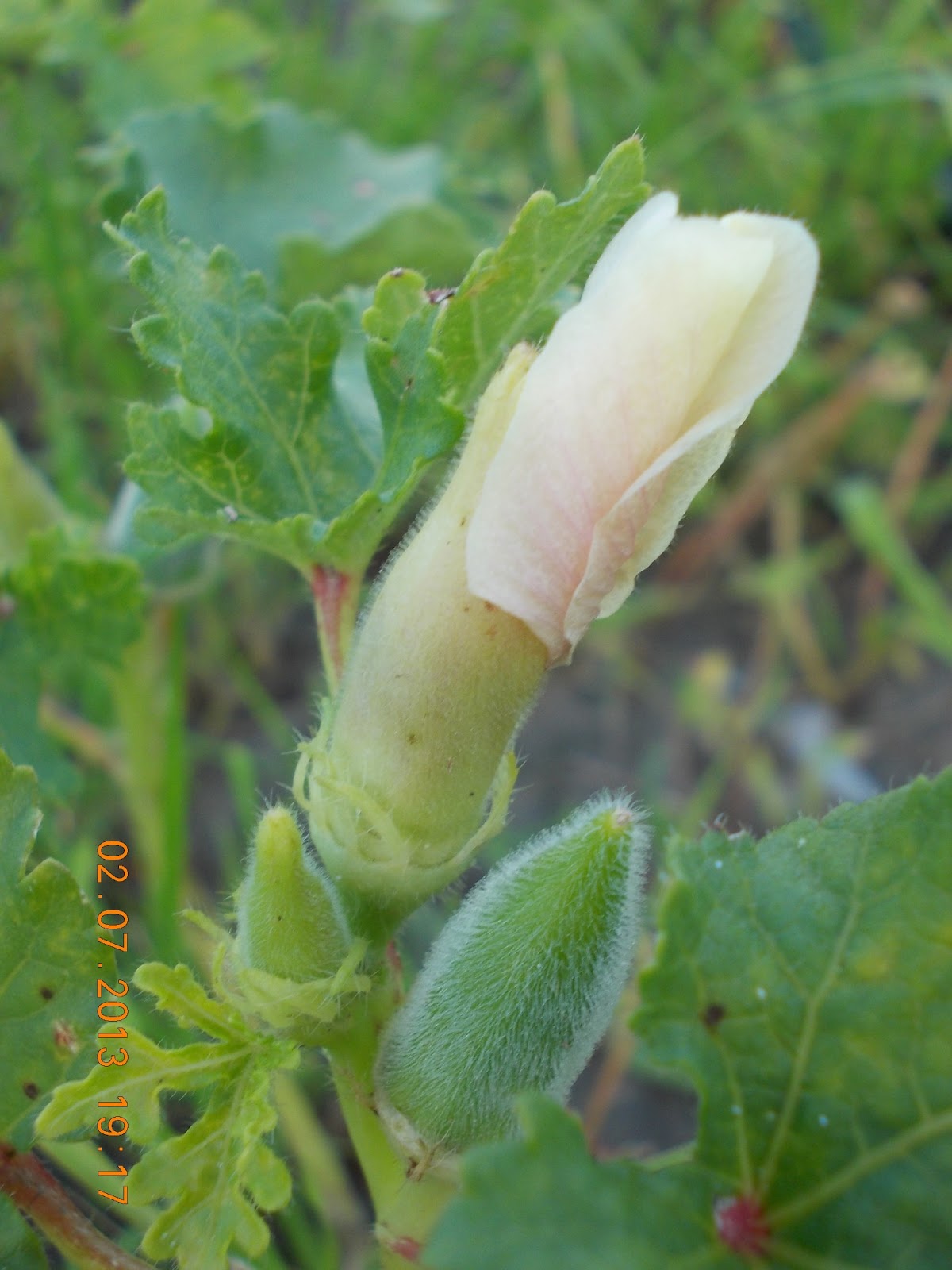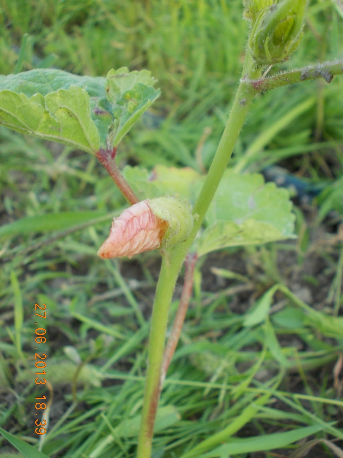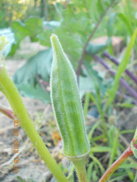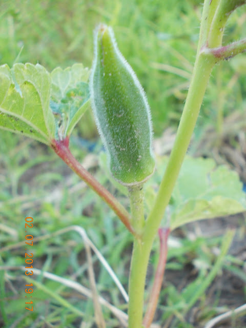 Bamele le-am semanat direct in sol, aliniate ca soldatii si le-am lasat in voia lor, sa vad cum se descurca. Au rasarit destul de repede, si au nascocit un boboc, frumos, fragil, roz pal, de sub care apare fructul verde, alungit. Este Bama cea verde sau Abelmoschus esculentus, dupa numele stiintific. Am incercat sa surpind frumoasa floare deschisa, dar inca nu am reusit.