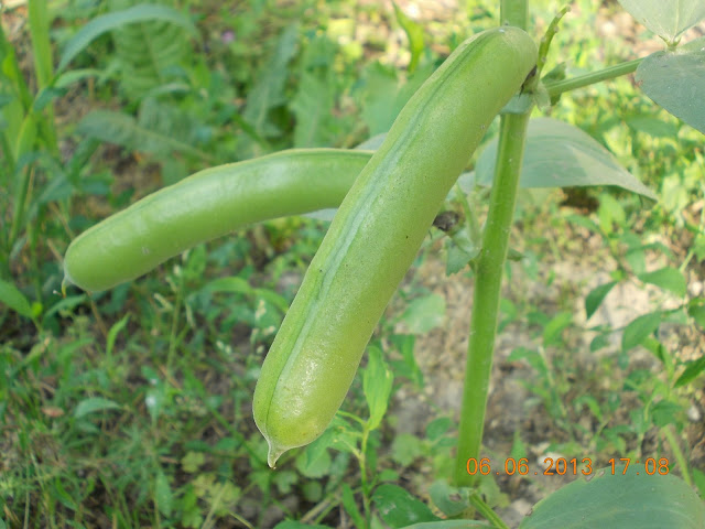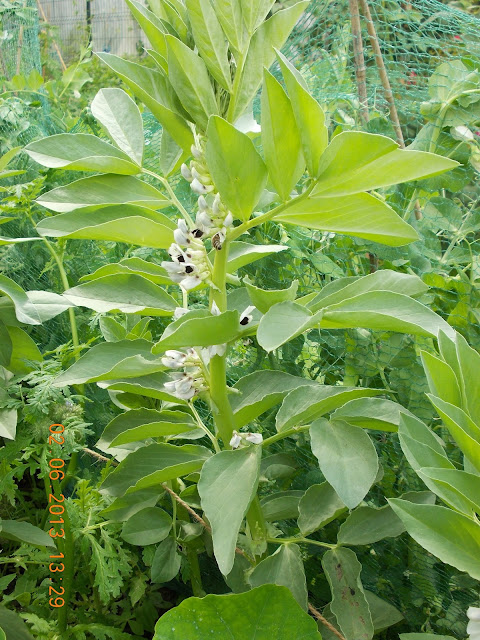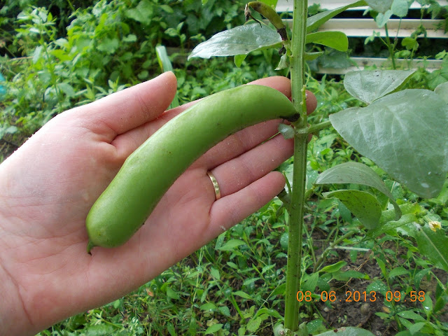 In timpul ploilor, am prins tulpinile de bob cu sfoara, si am sustinut cu cativa pari pe care i-am gasit la indemana.