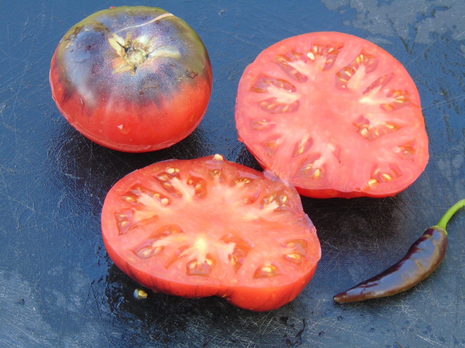 Janet’s Jacinthe Jewel și Blue Beauty, creator Brad Gates, tomate cu „carne” fermă,