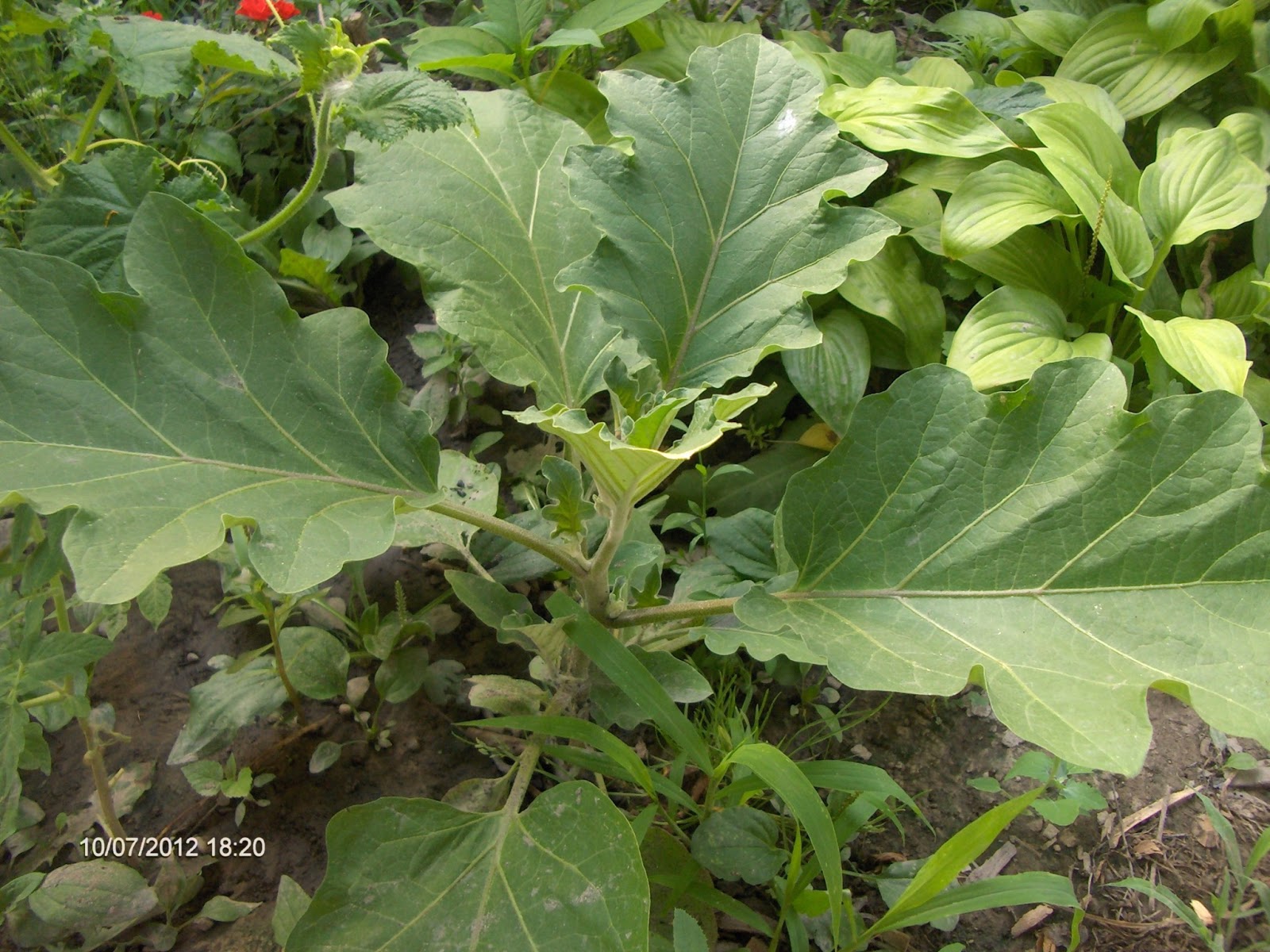 Le-am asezat si pe ele tot langa castraveti, in spatele solarului Vecinului. Nu fac multe vinete, dar acestea sunt foarte mari, globuloase si fragede. Vecinul m-a intrebat daca este brusture, dupa cum vedeti, frunza este mare si altfel.