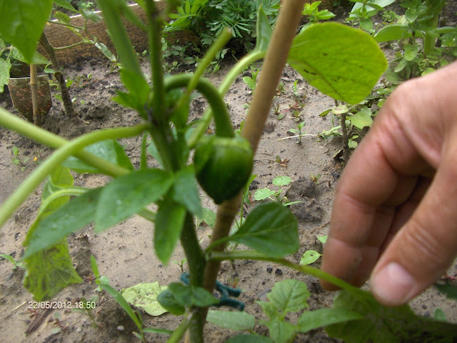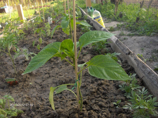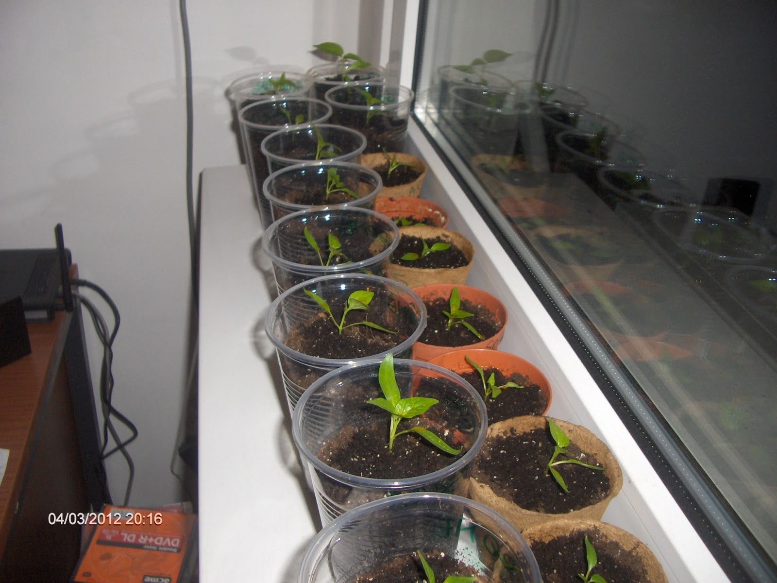 Anul trecut, cand am pregatit rasadurile de ardei, nu stiam prea multe despre ingrijirea conasilor frigurosi, asa ca am procedat la fel ca si cu cele de tomate. Le-am repicat, le-am dat sa bea ceai de coada calului, cat nici bunica nu a baut, i-am tinut pe pervaz, la fereastra, plus orele de veioza, in loc cald, deasupra caloriferului. Inainte de transplantare le-am montat cercelul de cupru, cam cu o saptamana inainte de mutarea in gradina.