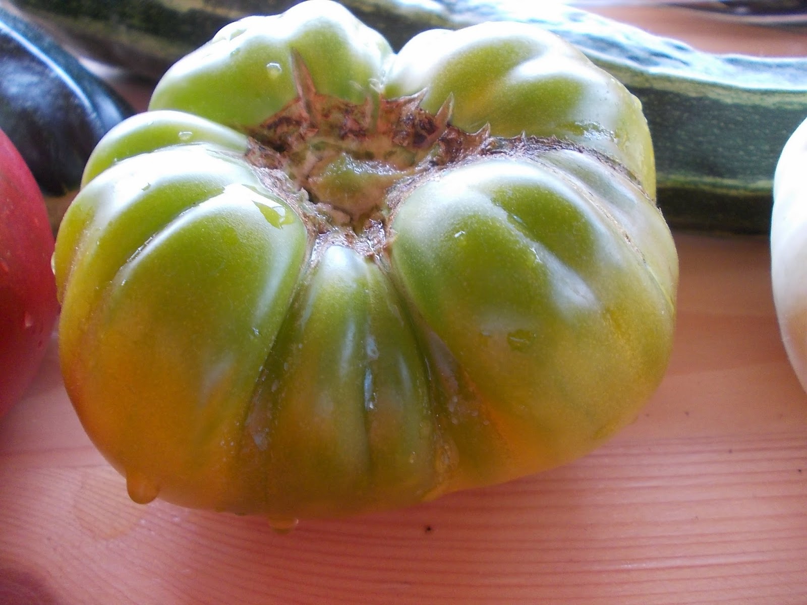 Tomata Old german este dornică să culeagă toate aplauzele. Fructele sunt mari, cele dezvoltate au peste 600 gr.