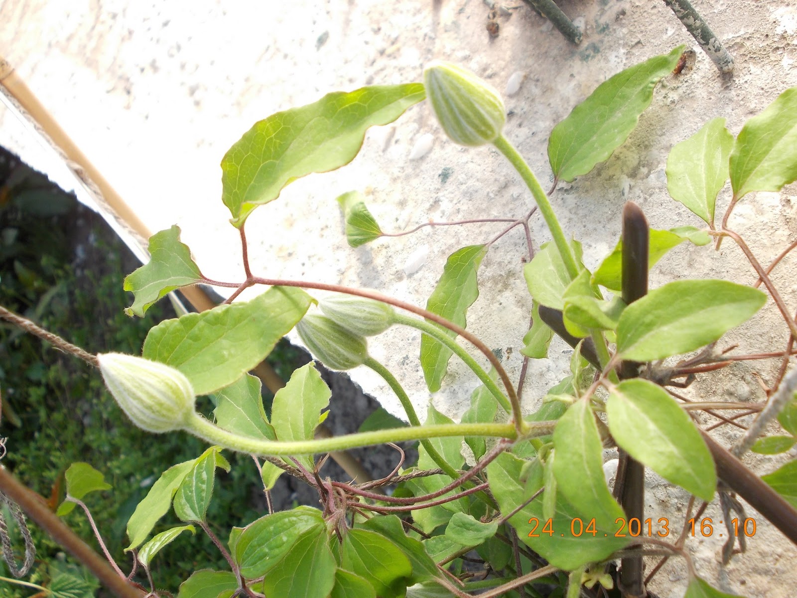 Clematisul alb Miss Bateman, a fost prima sosita anul trecut, la fel a imbobocit si acum. Apoi, Dolicos de care imi era dor, se descurca binisor , azi o indrept catre gard, iar Susie cea frumoasa, cu surata ei, cauta sprijin catre soare.