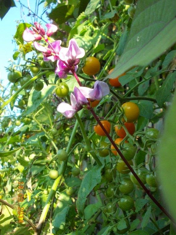 Tomatele SunGold și lianele de Dolichos se împletesc pe portativul vegetal.