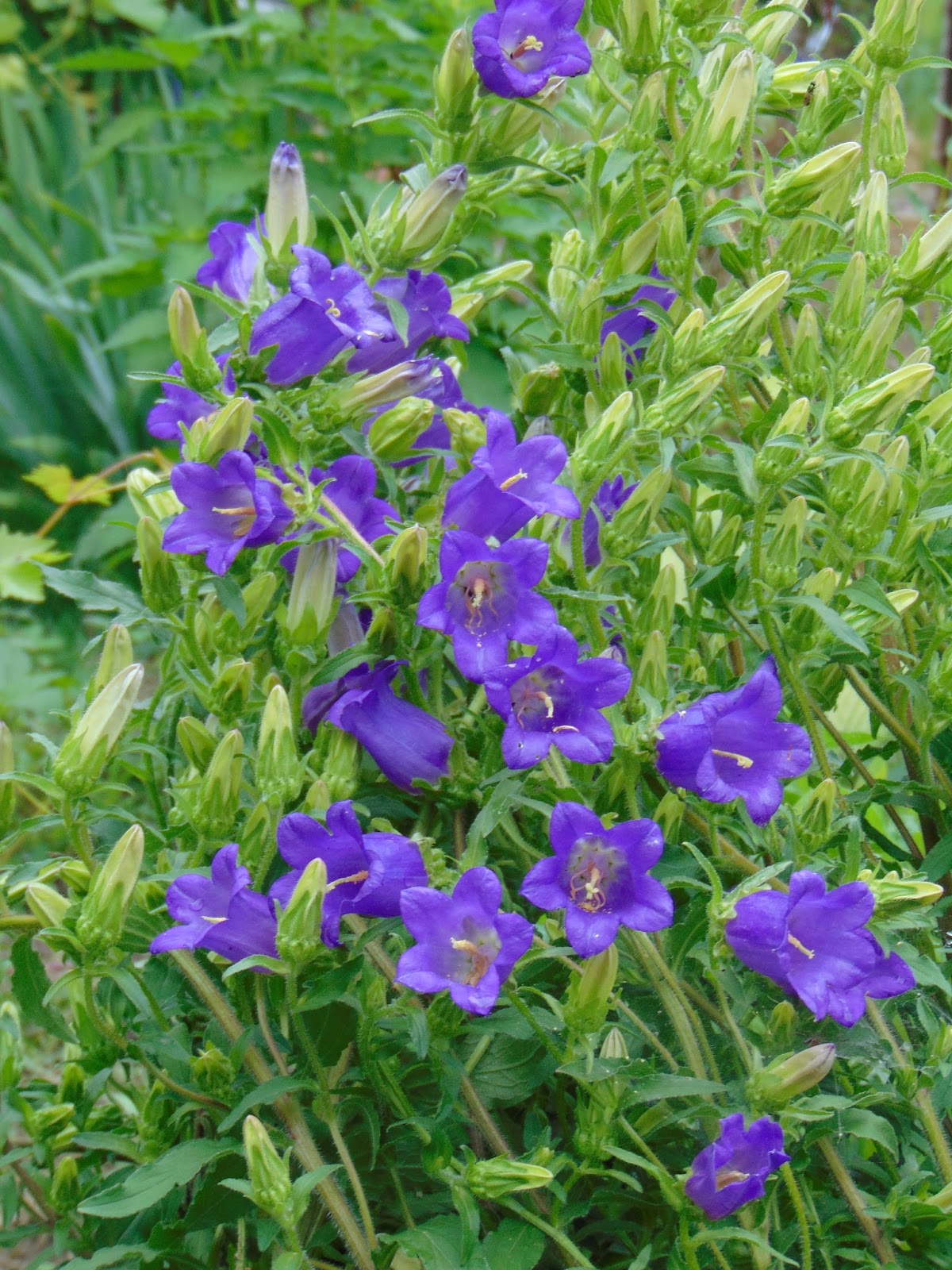 Câteva imagini din grădina pregătită să primească Vara cea frumoasă. Clopoțeii Canterbury semănați primăvara trecută au înflorit delicat, margaretele își împletesc tulpinile, au apărut broscuțele și gușterii. Anul acesta am plantat tomate și pepeni pe lăngă stratul de topinambur, văd că se înțeleg bine.