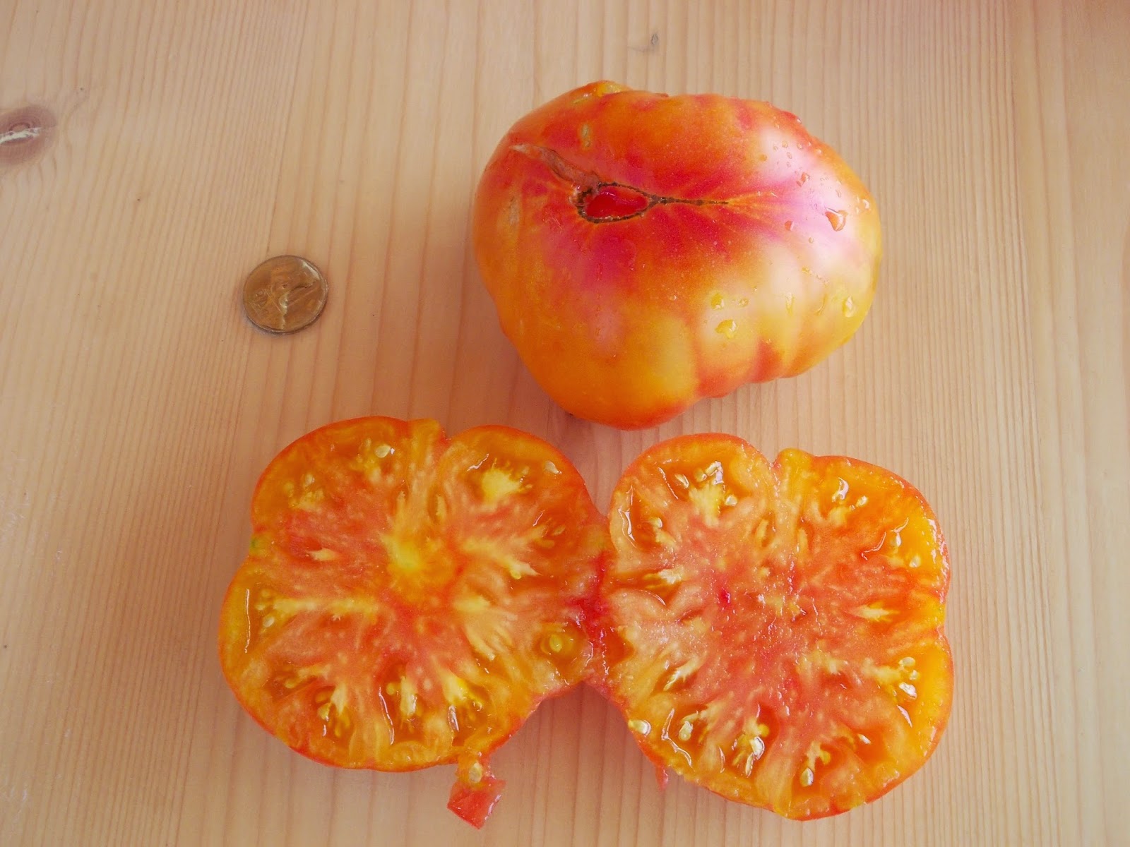 Miruna, am făcut zacuscă din vinetele portocalii, au un miez fraged colorat auriu. Am pus și suc de roșii galbene si ardei roșu.