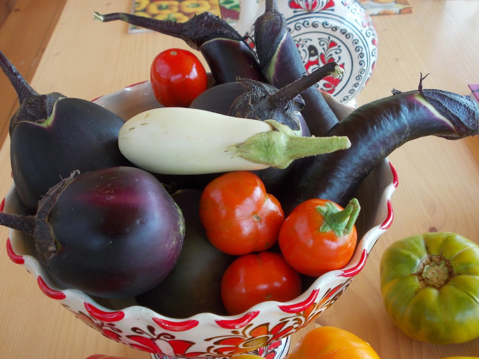 Toate sunt frumoase, grădina în sine e ceva deosebit, cred că ai cea mai frumoasă grădină, roșiile prezentate sunt apetisante, vinetele sunt demne de cel mai fițos master-chef, domnișoara Alexia e în pregătire pentru Holywood, clar, iar ceramica vaselor de pe masă m-a făcut… invidioasă!