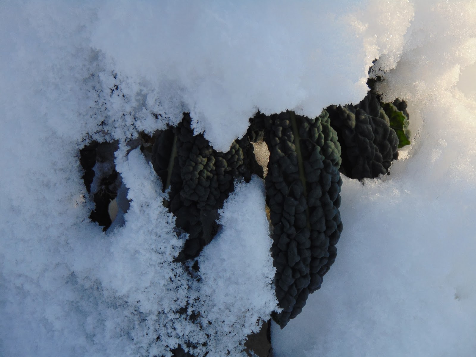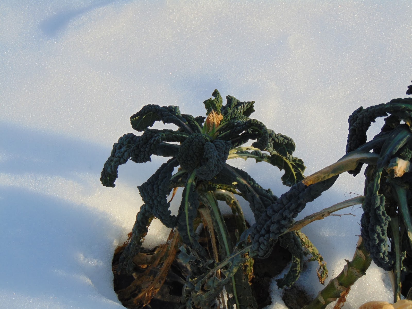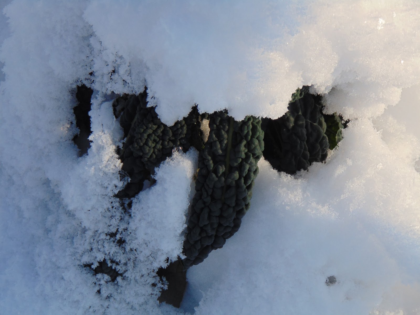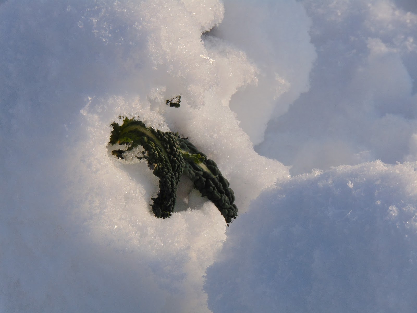 Varza de iarnă și kale se zăresc de sub zăpadă, mă apropii de ele și de solar.