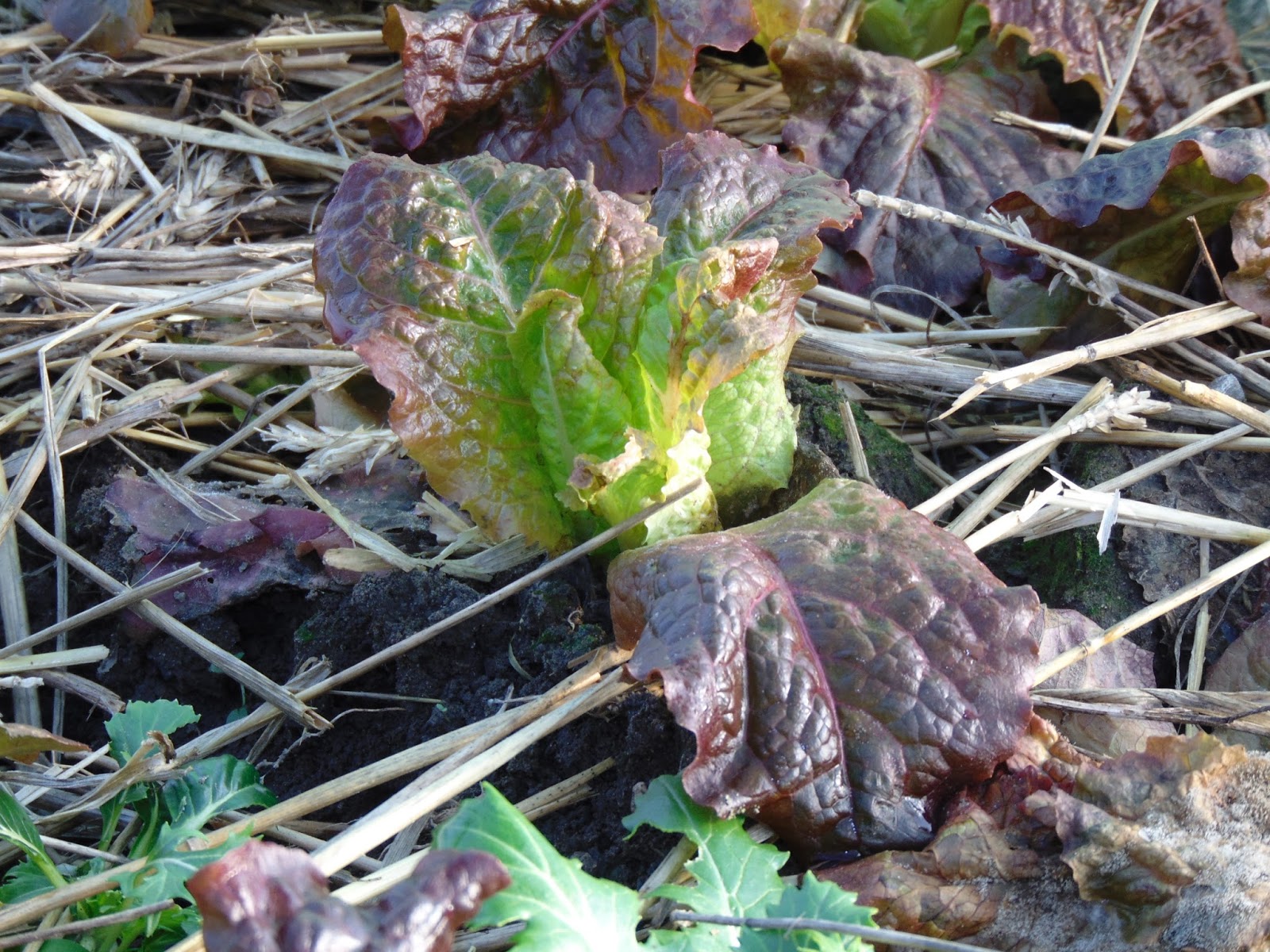 Au mâncat un rând de salate într-o singură zi, dar am mai plantat înca unul, că nu-mi place să rămână solarul gol peste iarnă. Anul trecut am folosit agrilul pentru protecție, anul acesta am folosit paiele și folia în perioada cu -20C. Este o folie mai groasă, are o ranforsare.