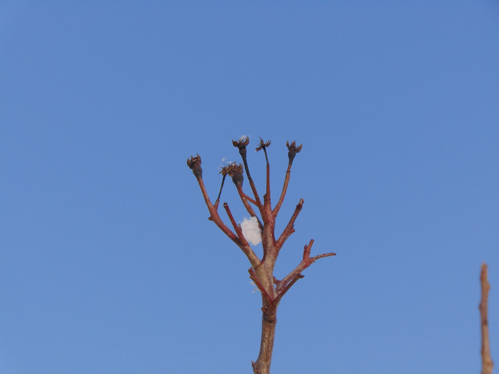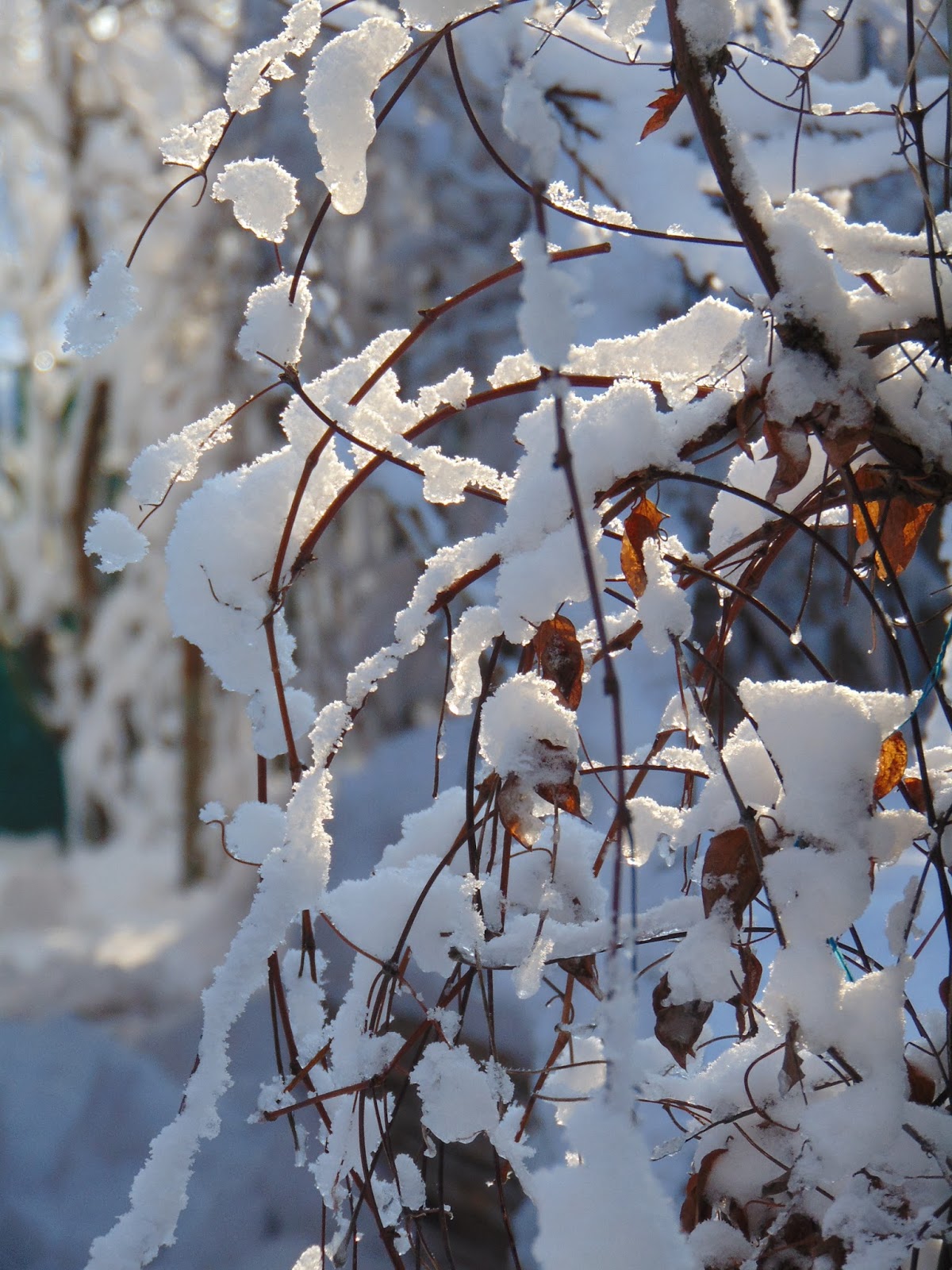 Caut și găsesc o frunză, un trandafir prins în gheață și urmele Brândușei.