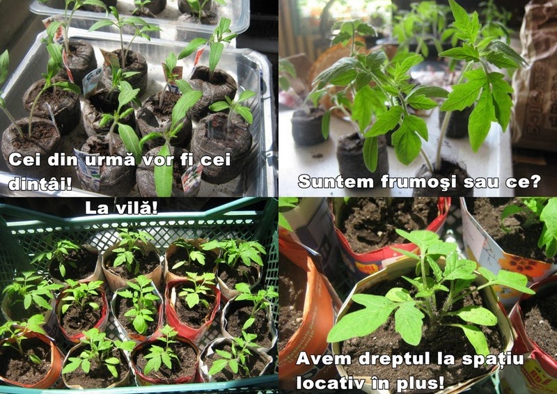 Eu folosesc initial tavite, pentru ca imi este mai usor, de manevrat si le pot tine pe toate la fereastra, pana fac 2-frunzulite adevarate, apoi le mut in ghiveci definitiv – in ladite. Cand sunt maricele le duc la solar sa prinda ultraviolentele.”