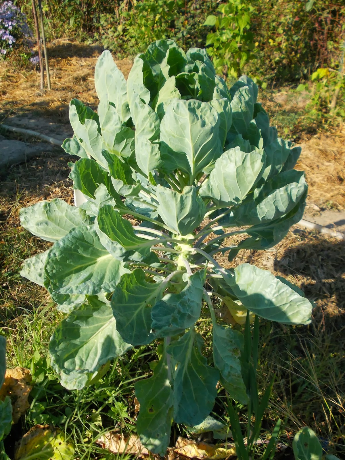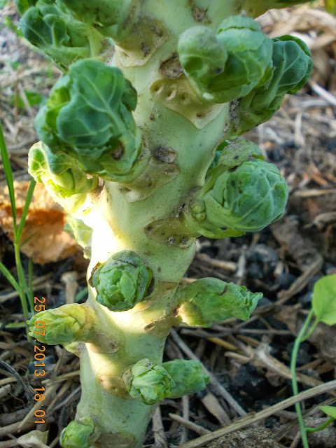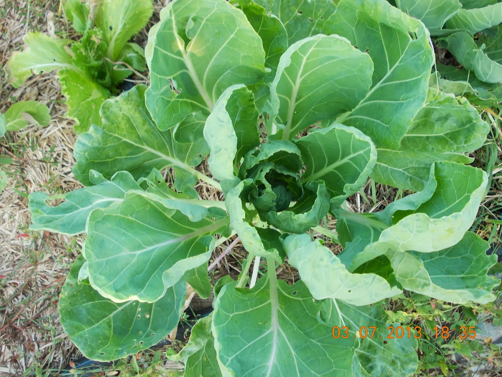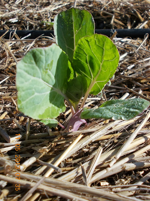 Rasadurile verzei de Bruxelles (Brassica Oleracea Gemmifera) le-am plantat in solul acoperit cu carton si paie, ca sa aibe umezeala la radacini si buruienile sa nu le deranjeze.