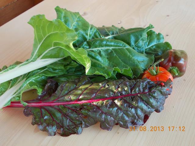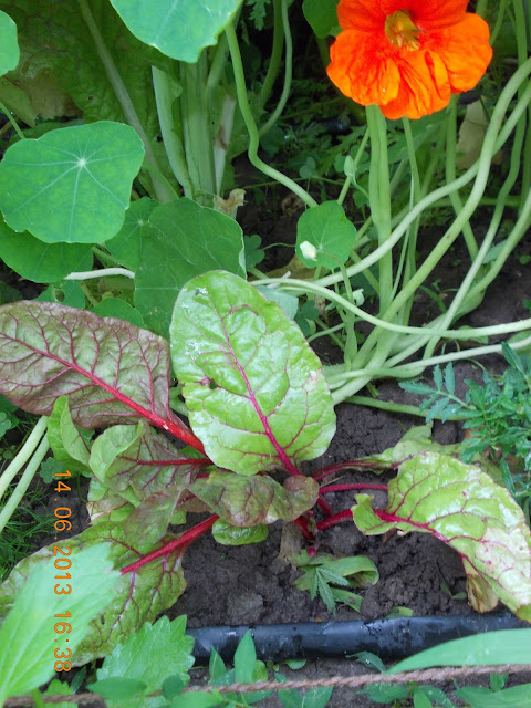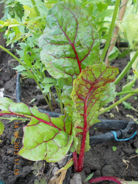 Mangoldul l-am semanat in luna Mai, la o adancime de 4 cm, printre rucola, leustean si condurasi. Tot in aceeasi luna am plantat in patul inaltat cateva rasaduri de mangold primite de la Brandusa.