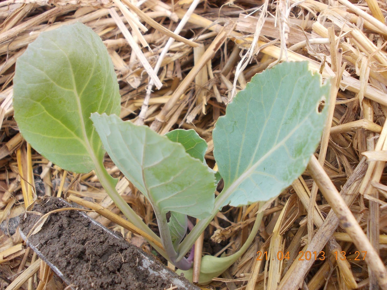 Am verificat ce se intampla sub patura de carton si paie, asternuta acum 3 saptamani si am gasit un sol umed si moale, asa ca am asezat rasadurile de varza, pentru proba.