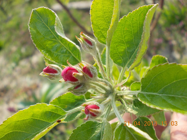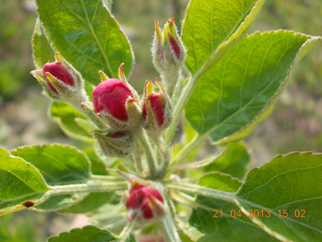 Am plantat si noi, in toamna anului 2011, doi meri mici si subtiri si nu m-am gandit ca o sa vad prea curand vreo floare de mar la noi in gradina, de fapt nici nu stiam cum arata. Azi am vazut si va arat si voua :