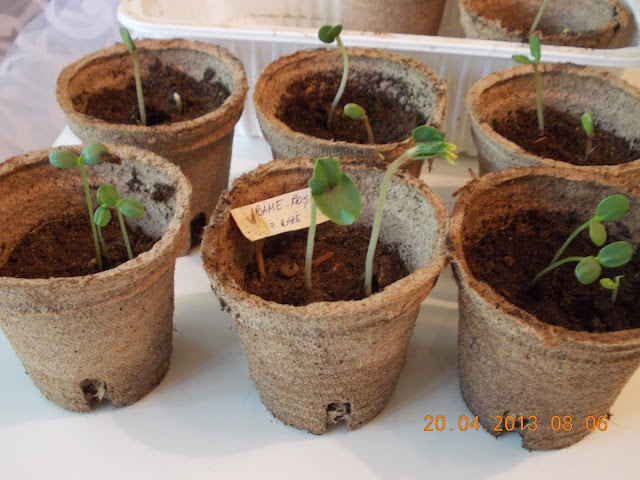 Am aliniat si rasadurile de bame rosii si mazare sparanghel si le-am pus un clop transparent, pentru ca sunt fragile, abia iesite din casa.