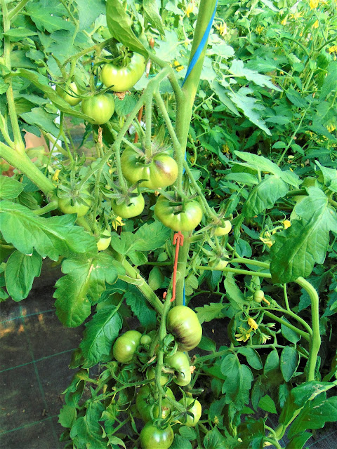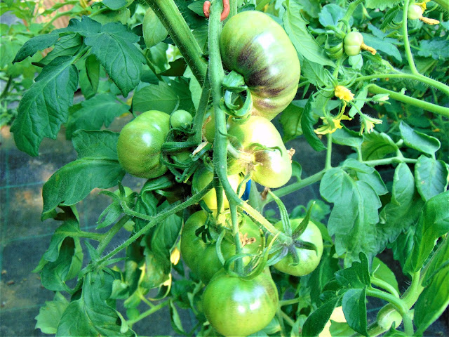 Soi recent creat de către Steve Whiteaker, în SUA, la DoubleHelixFarm, cu fructe rotunde cu greutatea între 60 până la 100 de grame, de culoare roz, cu robe violet-albastre pe umeri. Fructele sunt dispuse în ciorchini de tip evantai, care necesită susținere, fructele fiind numeroase. Aroma este echilibrată, pielița subțire. Planta măsoară acum 1.70 m și are trei etaje de fructe formate. Cultivat în plin soare, culoarea albastră acoperă aproape în intregime tot fructul.