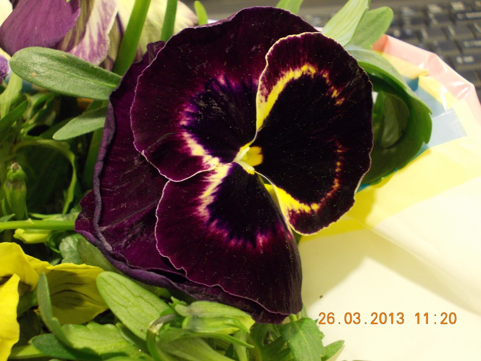 Astazi ninge tot ca si ieri, iar colega mea care a primit aceste flori este bolnava. Se simtea rau si a uitat florile afara, pe pervaz. Le-am gasit ieri dimineata pline de zapada. Incerc sa i le pastrez pana se intoarce, am aflat intre timp ca are pneumonie.