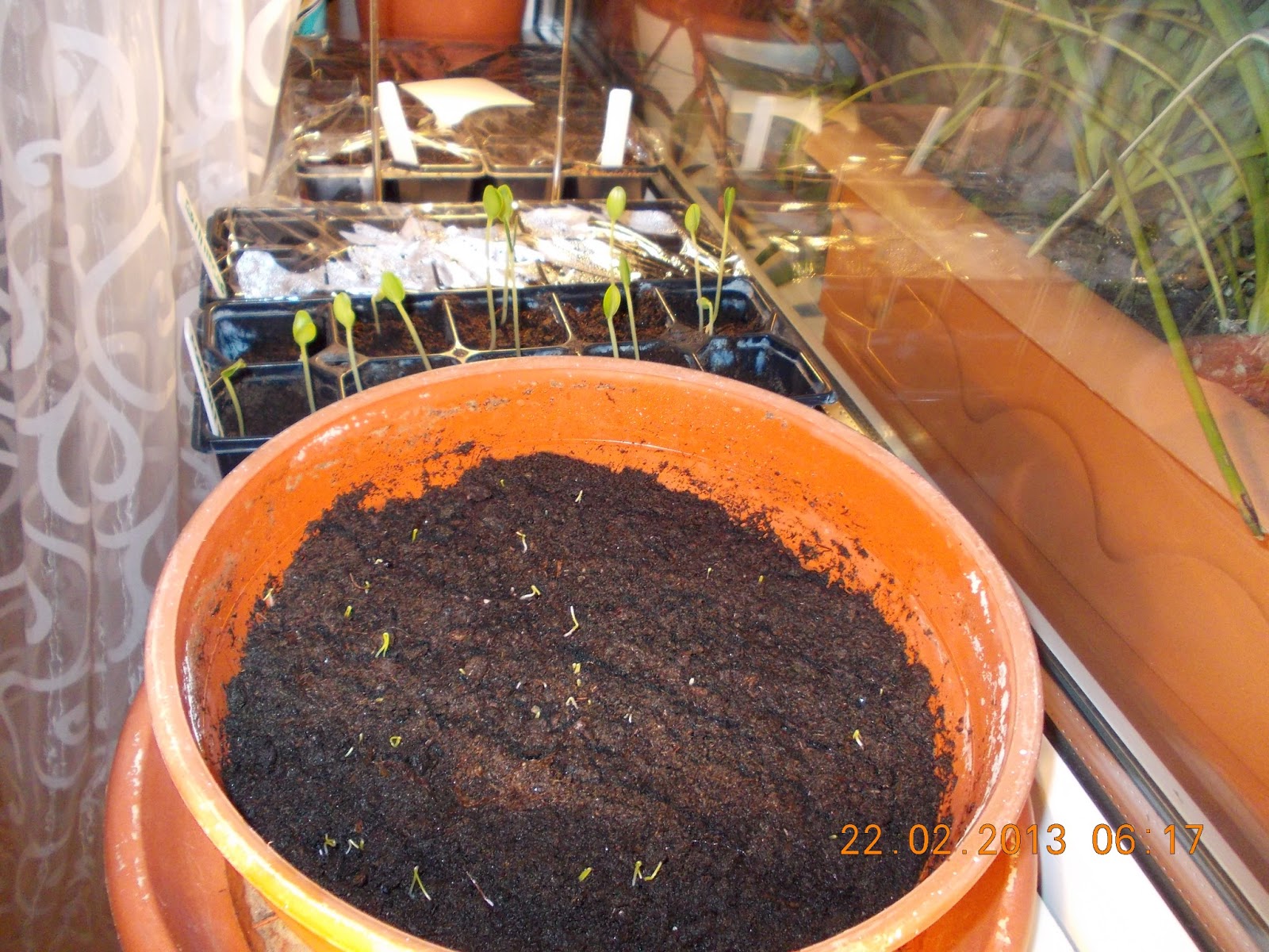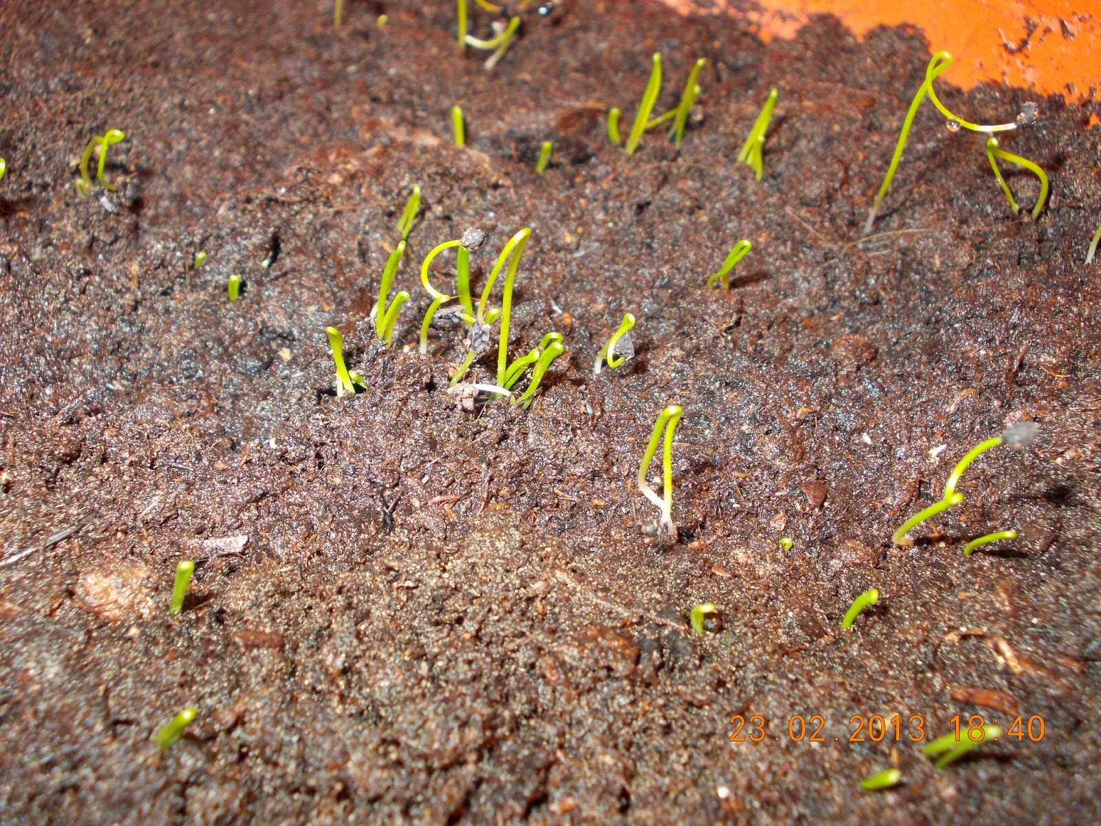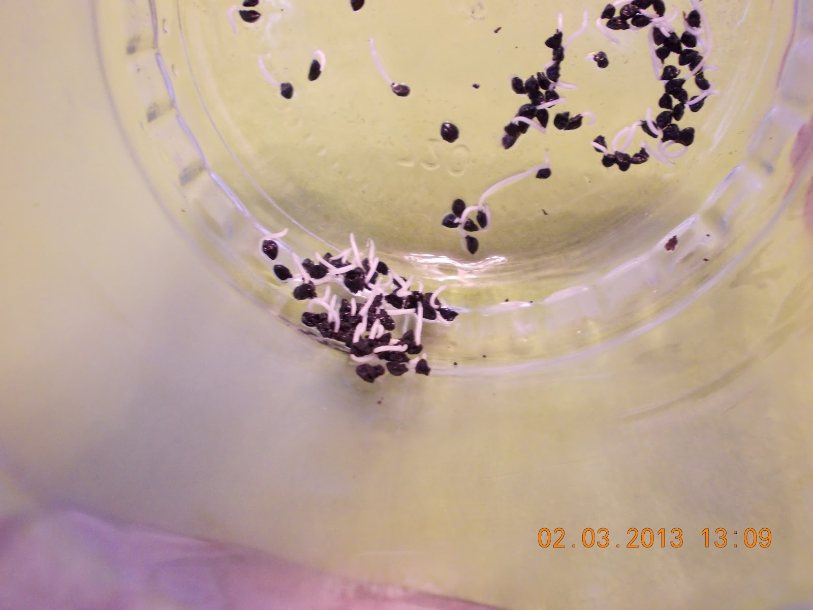 Seminţele se ţin in aceasta soluţie cam 18-24 ore, după care se clatesc cu apa calduta si umede fiind inca, se pun intr-un vas de sticla ( nu plastic ) acoperit si se tin la frigider 2-3 zile. Se scot de la rece si se seamana in pamantul pregatit . Se acopera si se asteapta cam 3 – 4 zile.