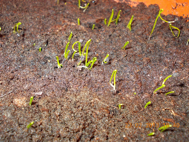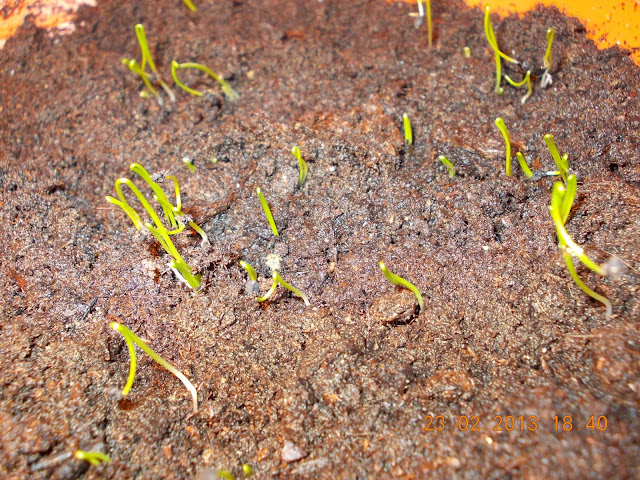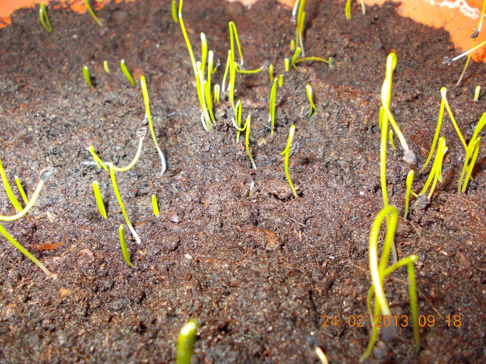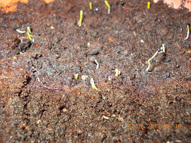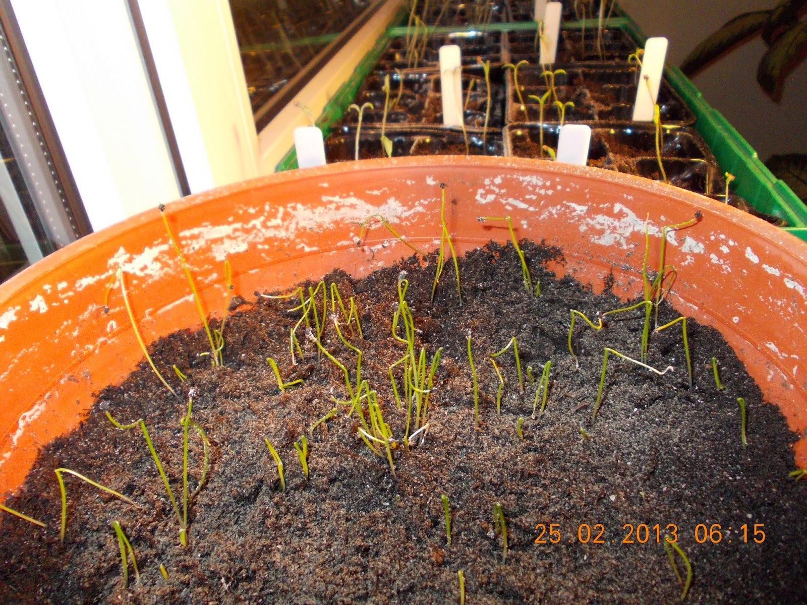 Seminţele se ţin in aceasta soluţie cam 18-24 ore, după care se clatesc cu apa calduta si umede fiind inca, se pun intr-un vas de sticla ( nu plastic ) acoperit si se tin la frigider 2-3 zile. Se scot de la rece si se seamana in pamantul pregatit . Se acopera si se asteapta cam 3 – 4 zile.