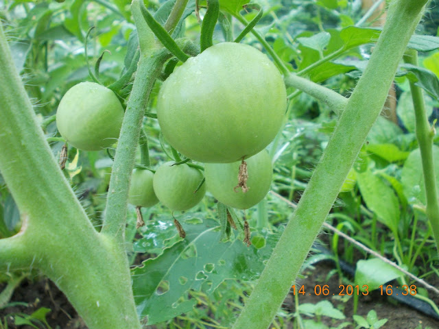 Cum sa nu ai tomate grozave cand le bibilesti atat,le-ai facut cosmelie speciala sa stea la umbra,mai ales acum cu canicula asta ele sunt foarte fericite,ma uit si la mine sub perdele este alta viata decat in restul gradinii unde nu am acoperit.