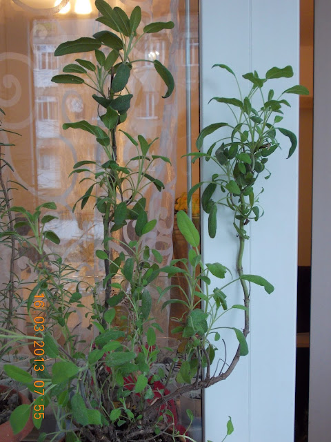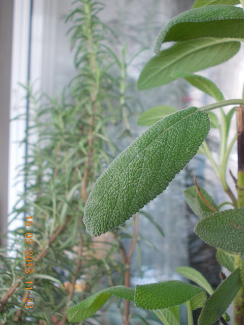 Zilele trecute am vazut pe blogul lui Angeli, rasaduri micute de salvie si le-am admirat frunzele gingase, verde inchis si dintr-o data mi s-a facut dor de salvia si rozmarinul din balcon. Am realizat astfel, ca rosiile imi ocupa mai tot timpul si ca iar am neglijat celelalte plante. Sunt o tomatoholica, mi-am spus cu naduf si m-am repezit in balconul luminos : salvia si rozmarinul erau acolo si asteptau bineinteles.