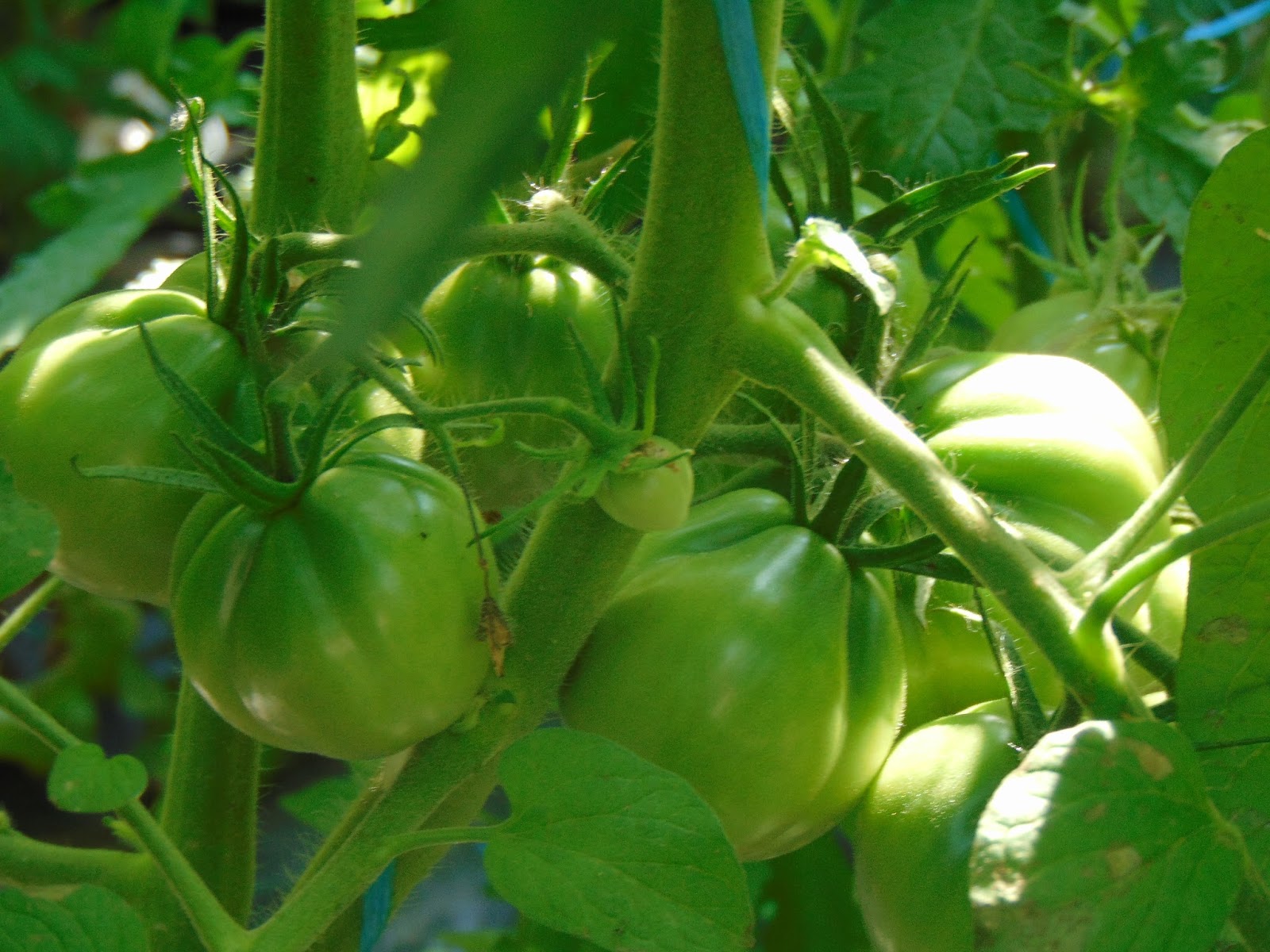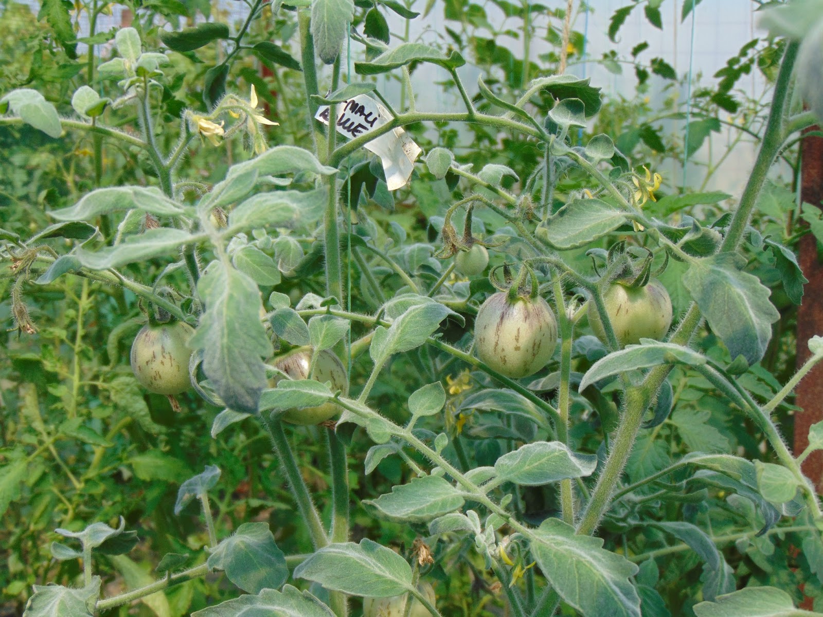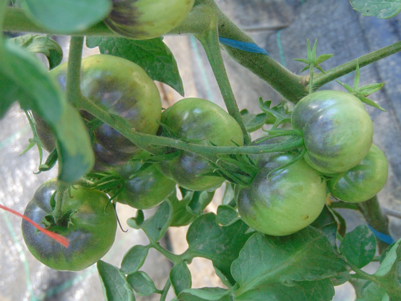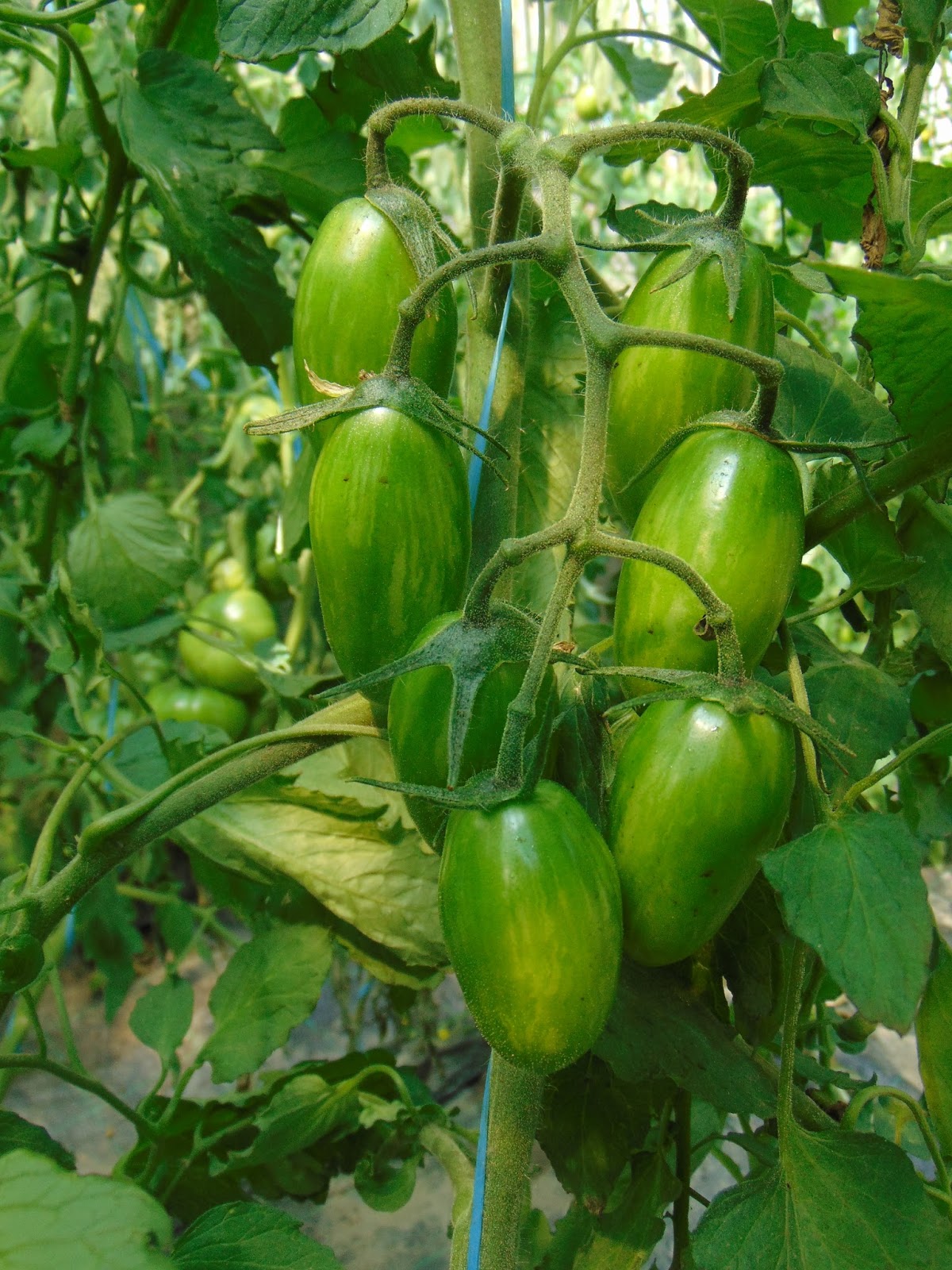 Am avut mari emoții când șantierul din curte a ajuns până lângă roșii dar băieții (muncitorii) mi-au înțeles îngrijorarea și au sprijinit cu mânile peretele de lângă roșii care a trebuit dărâmat. Le mulțumesc și pe această cale. Ca o concluzie bazată pe doi ani de observație, roșiile iubesc adăpostul. Sunt la fel de mari ca în seră, la fel de viguroase, dar parcă cu un rod mai bogat. Acum au deja trei metri, și mai au de crescut, probabil voi înlătura acoperișul, cât de curând.