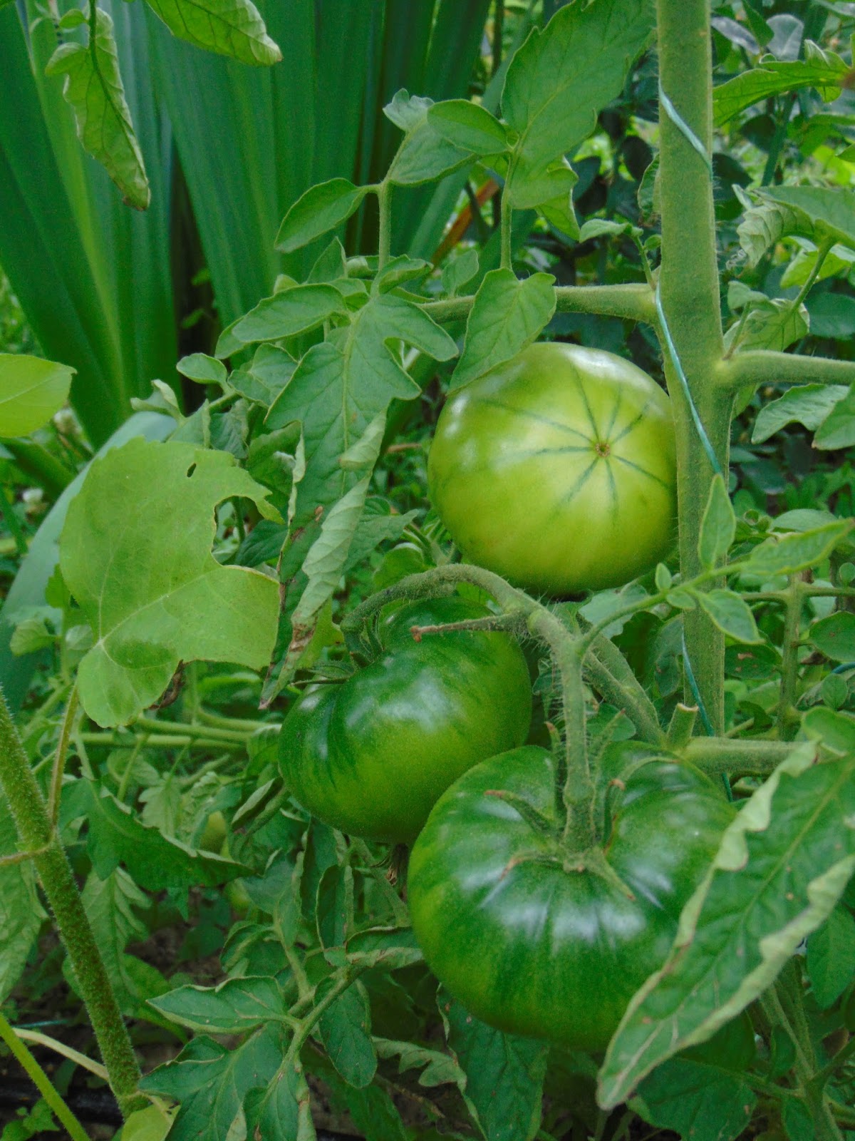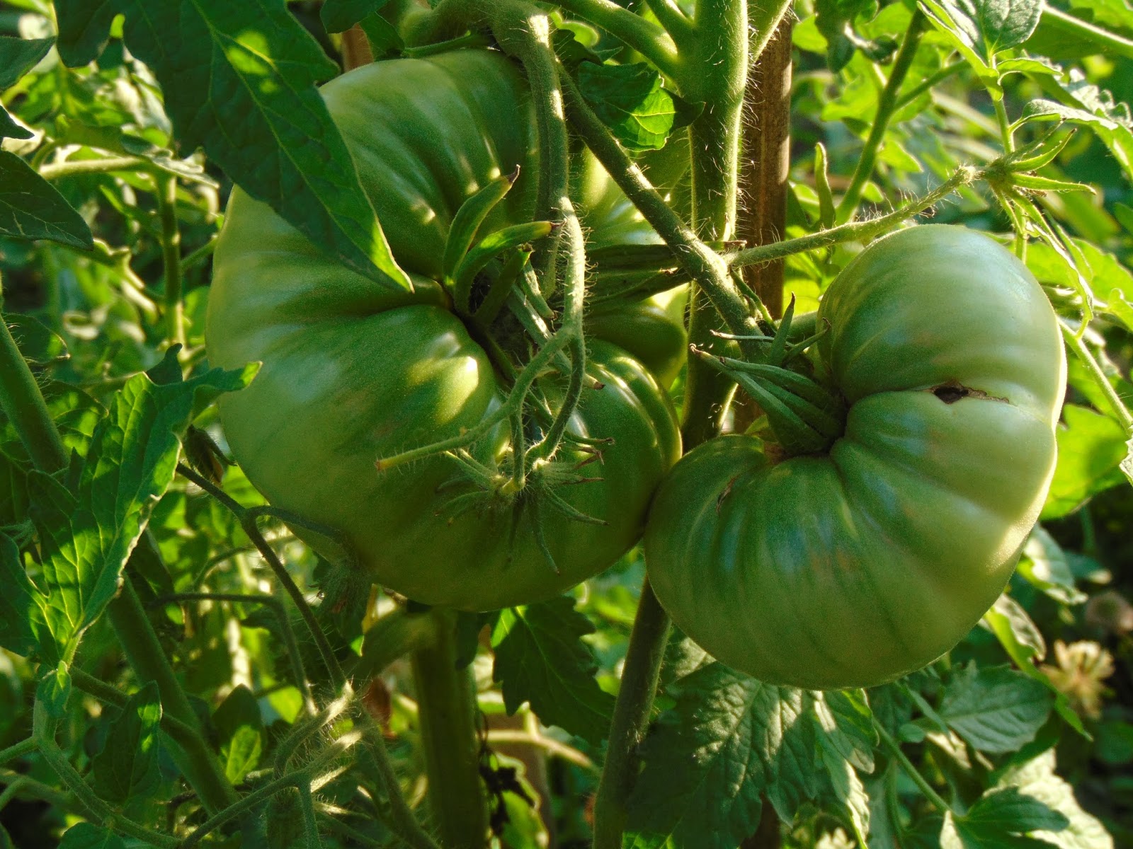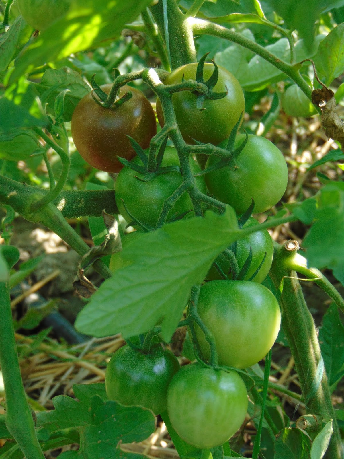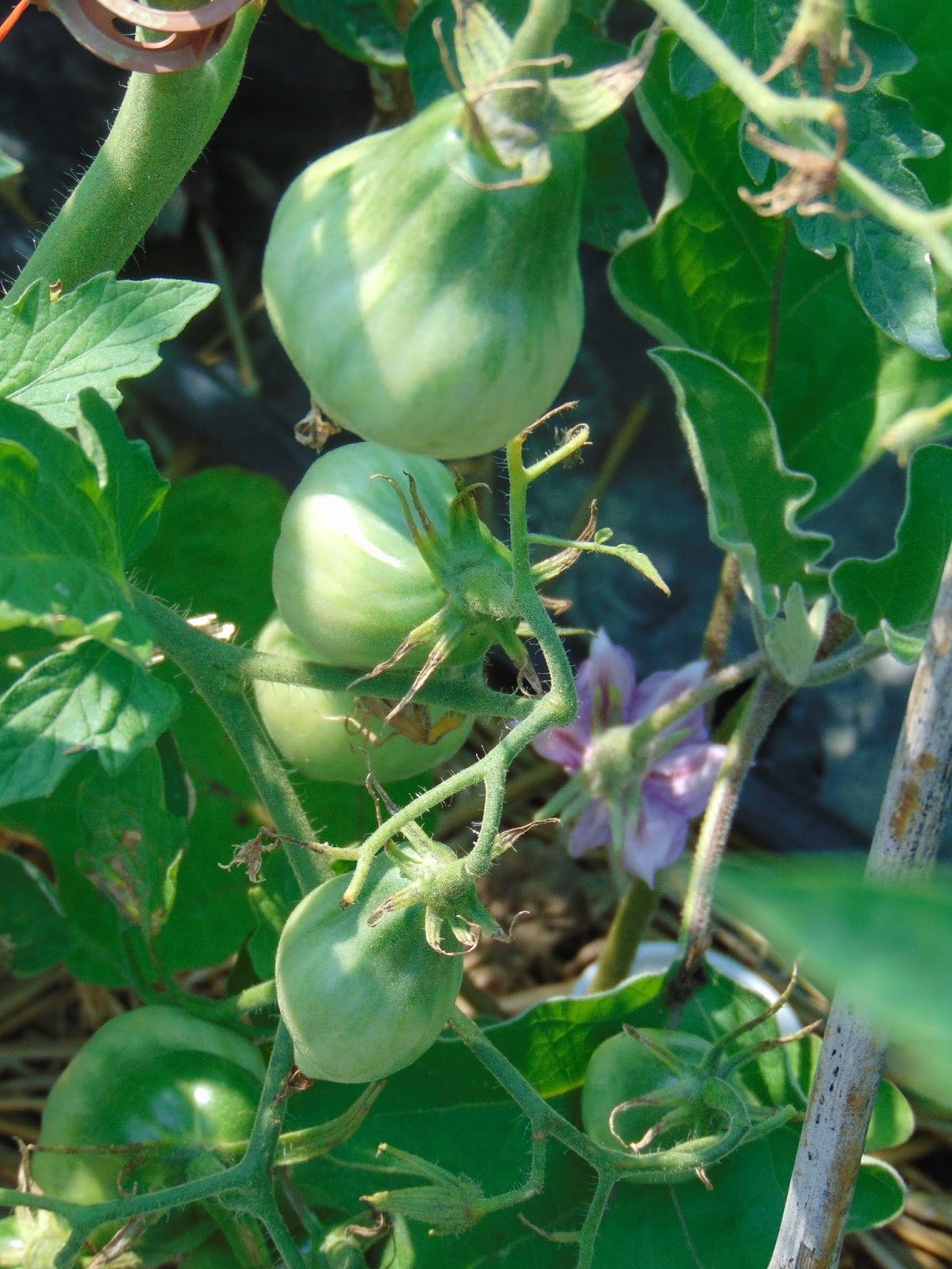 Am avut mari emoții când șantierul din curte a ajuns până lângă roșii dar băieții (muncitorii) mi-au înțeles îngrijorarea și au sprijinit cu mânile peretele de lângă roșii care a trebuit dărâmat. Le mulțumesc și pe această cale. Ca o concluzie bazată pe doi ani de observație, roșiile iubesc adăpostul. Sunt la fel de mari ca în seră, la fel de viguroase, dar parcă cu un rod mai bogat. Acum au deja trei metri, și mai au de crescut, probabil voi înlătura acoperișul, cât de curând.