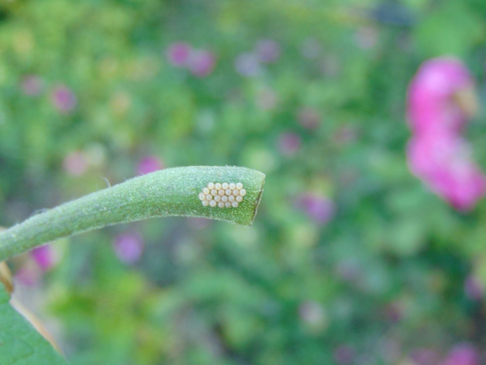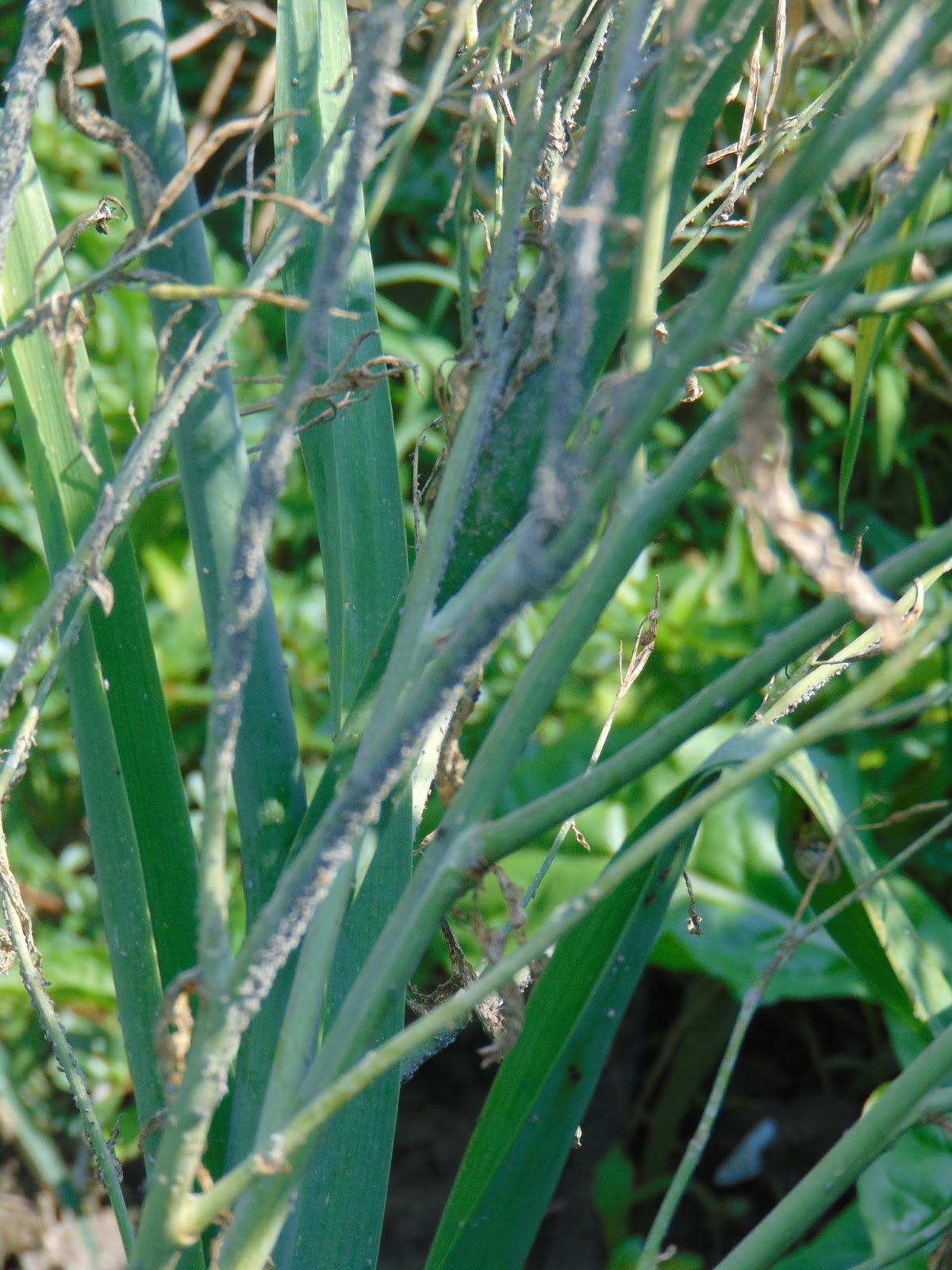 Muștarul roșu a adunat toate afidele, tulpina lui pare de două ori mai groasă. Molia tomatelor e prezentă, ne salutăm, i-am găsit progeniturile în două locuri, este, probabil cea care m-a vizitat și acum patru ani. Așa e ciclul ei de prezență.