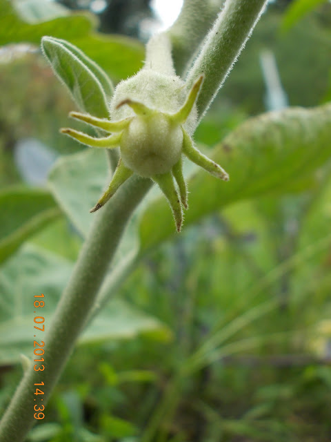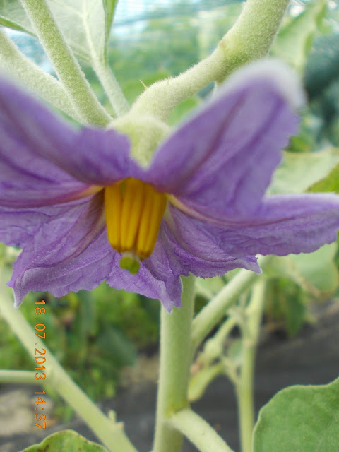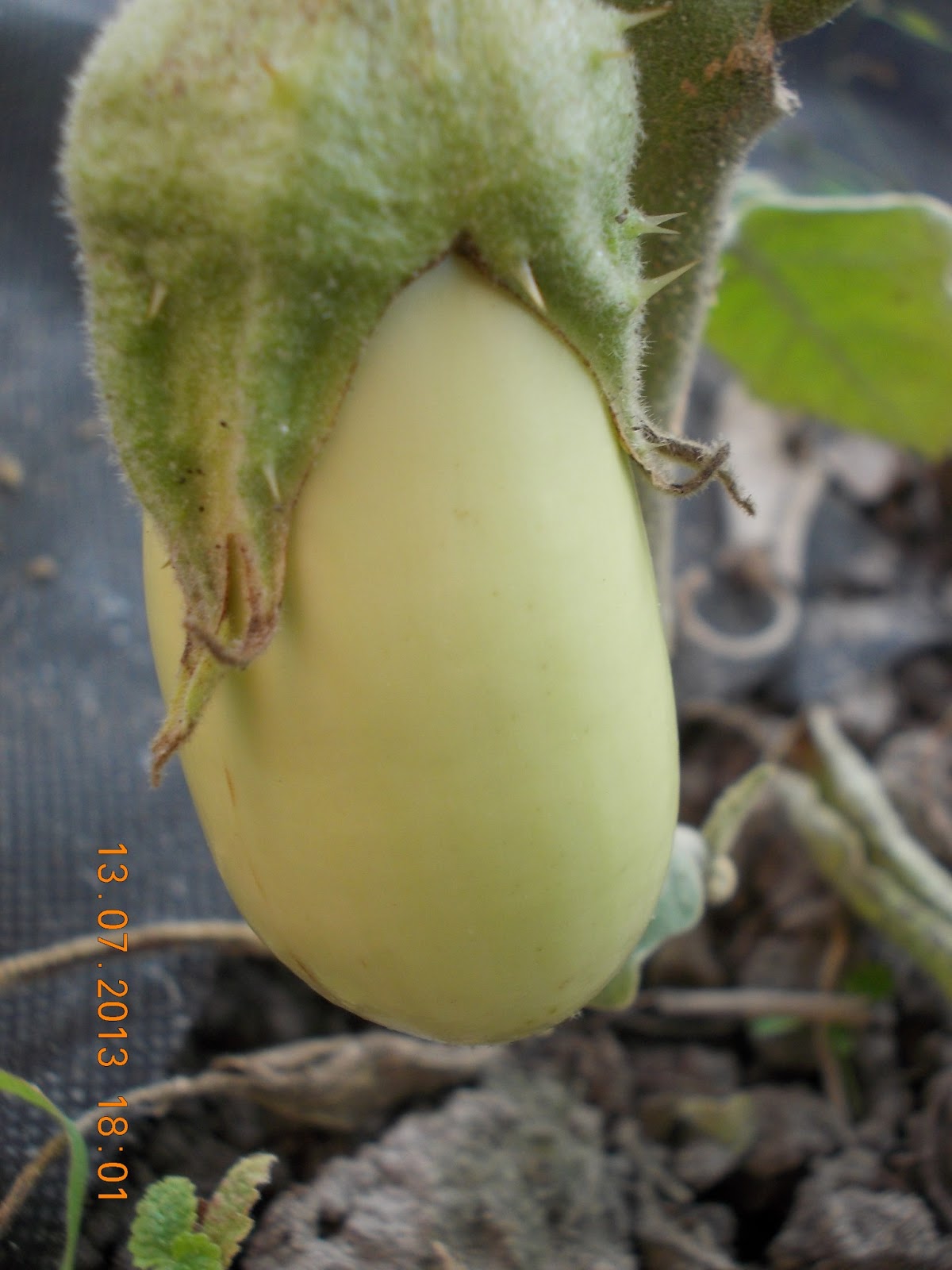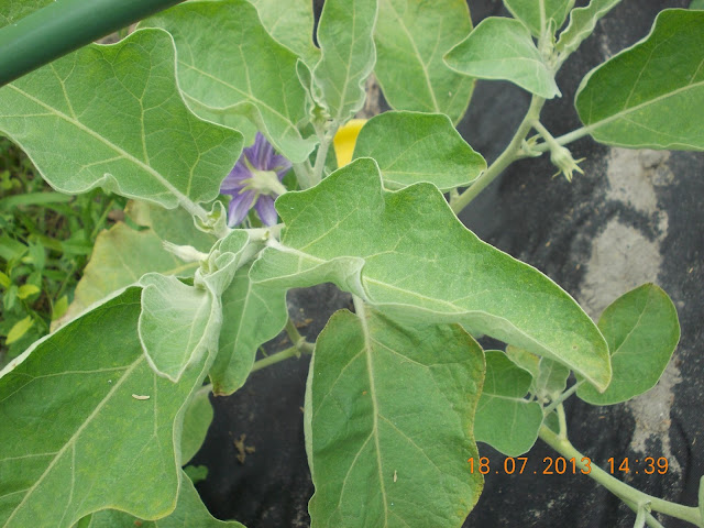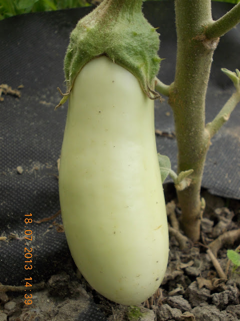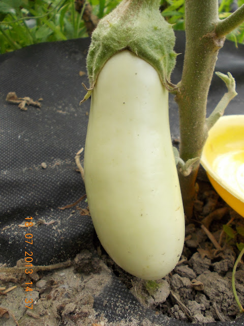 Am semnat la inceputul lunii Aprilie mai multe soiuri de vinete, printre care si cele albe. Le-am pregatit solul cu macerat de gainat , am acoperit cu o folie textila si le-am plantat in gradina la inceputul lunii Mai. Am acoperit plantele cu o folie transparenta si perforata, la fel ca si pe ardei, si tufele de vinete s-au dezvoltat frumos si au inflorit. Le-am hranit cu cenusa la radacina, cu foaie de ceapa pe frunze si cu bor pe delicatele flori. Primele care au rodit au fost vinetele albe, cele violet sunt inca boboci. Nu stiu gustul acestor fildesii, dar am aflat ca sunt mai fine si nu sunt iuti. Cred ca ne va trimite Mihaela cateva retete gustoase.
