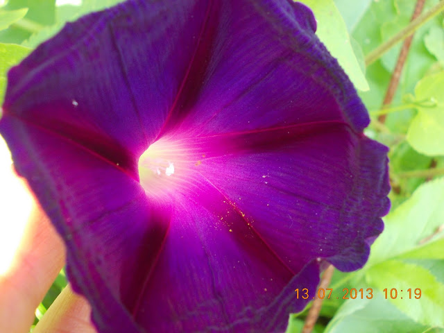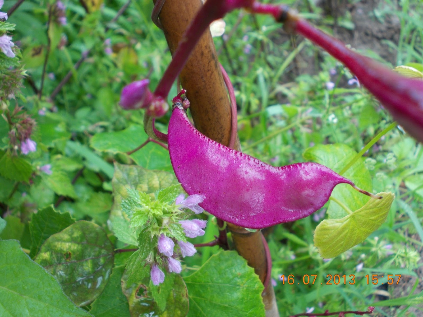 Au mai aparut in gradina , tot de culoare alb si violet, liliacul de vara Budlejja, pastaile de Dolicos indian, am gasit zece oua de broasca testoasa si pe gard am gasit zoreaua norocoasa.