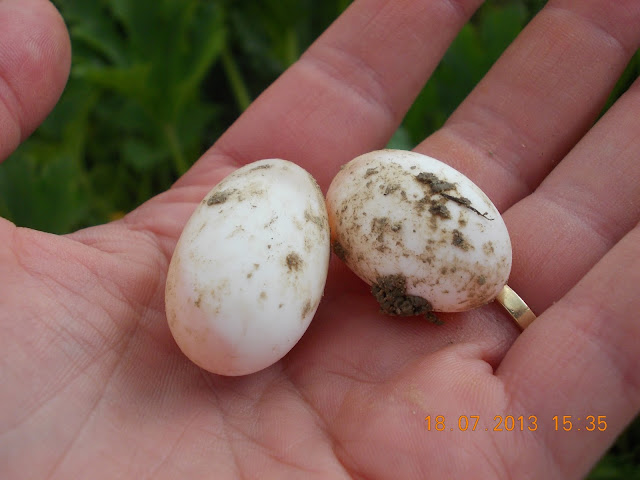 Ouale le-am gasit la o adancime de 40 cm, se vedea si tunelul sapat din lateral de broscuta. Balauri zici? Da, dar poate dragalasi..Trebuia sa o vezi pe Brandusa cum isi insurubase tot nasul ei lung in gaura broscutei.